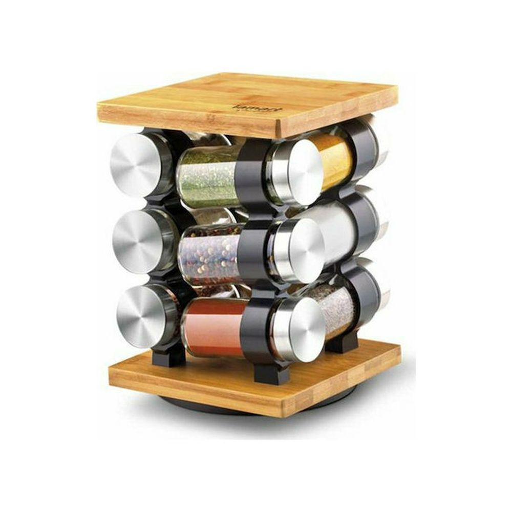 Lamart LT7010 Θήκες Μπαχαρικών Γυάλινες σε Περιστρεφόμενη Βάση Καφέ 12τμχ